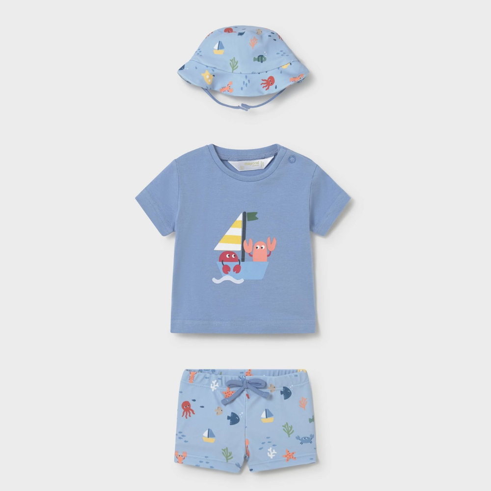 Mayoral Комплект за къпане от три части за малки деца с UV защита Sailboat