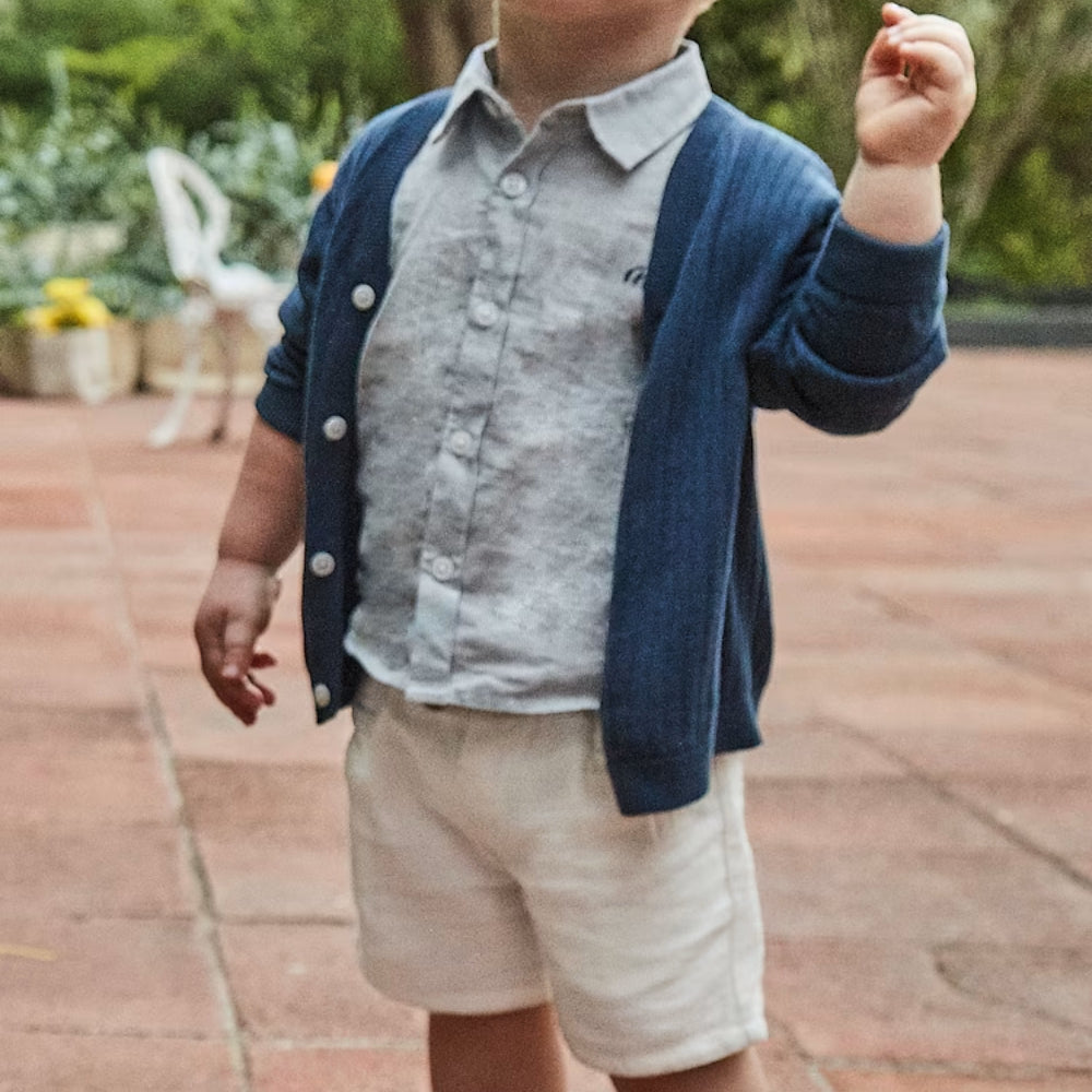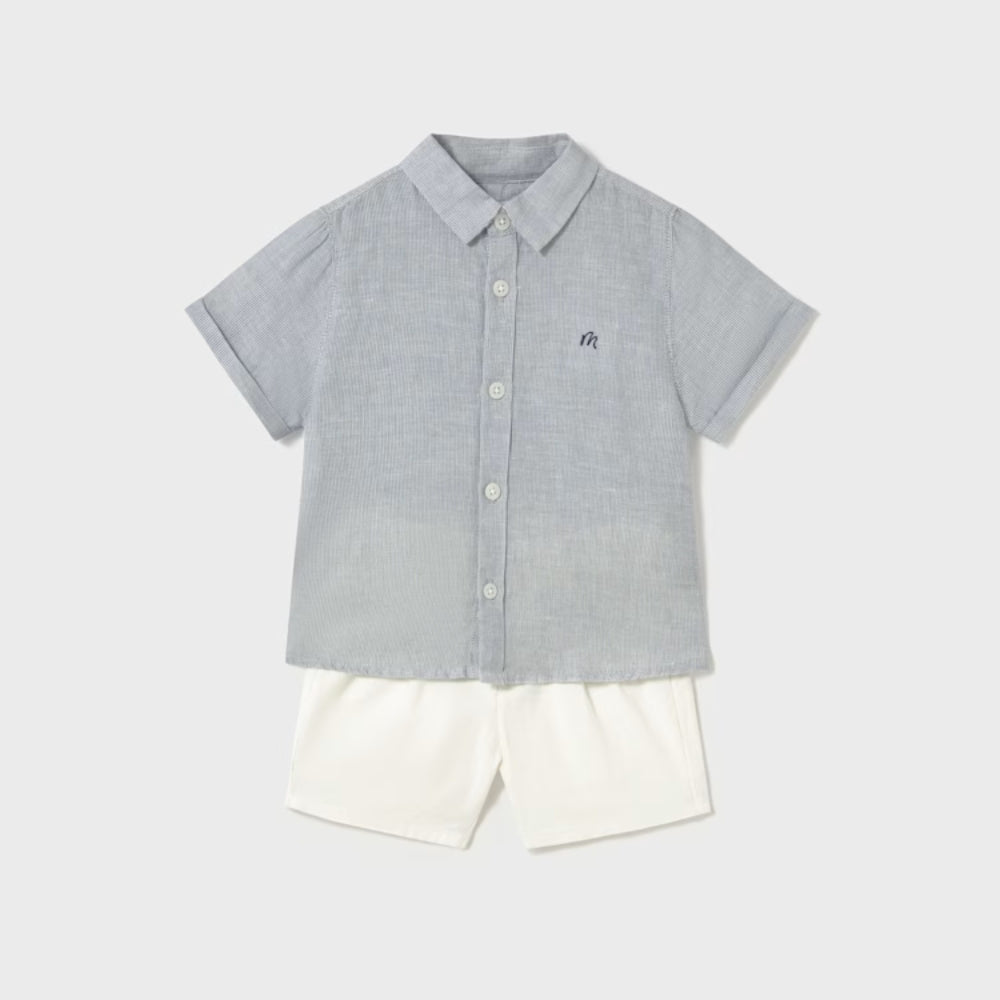 И шортите, и ризата, включени в комплекта, са изработени от висококачествена смес от памук и лен.