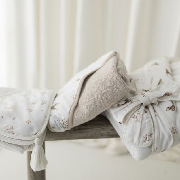 Бамбуковата кърпа 75x100 cm от колекцията Giraffes на Memi е изключително мека и приятна на допир.