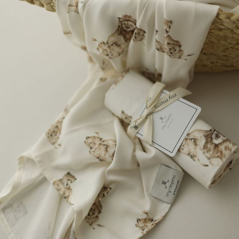 Деликатните мотиви на колекцията Lions са проектирани от My Memi с внимание към детайлите, което прави муселиновата пелена практична и стилна.