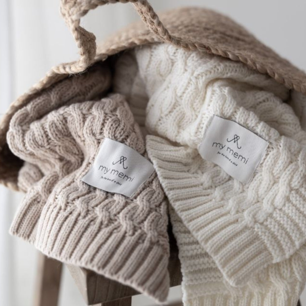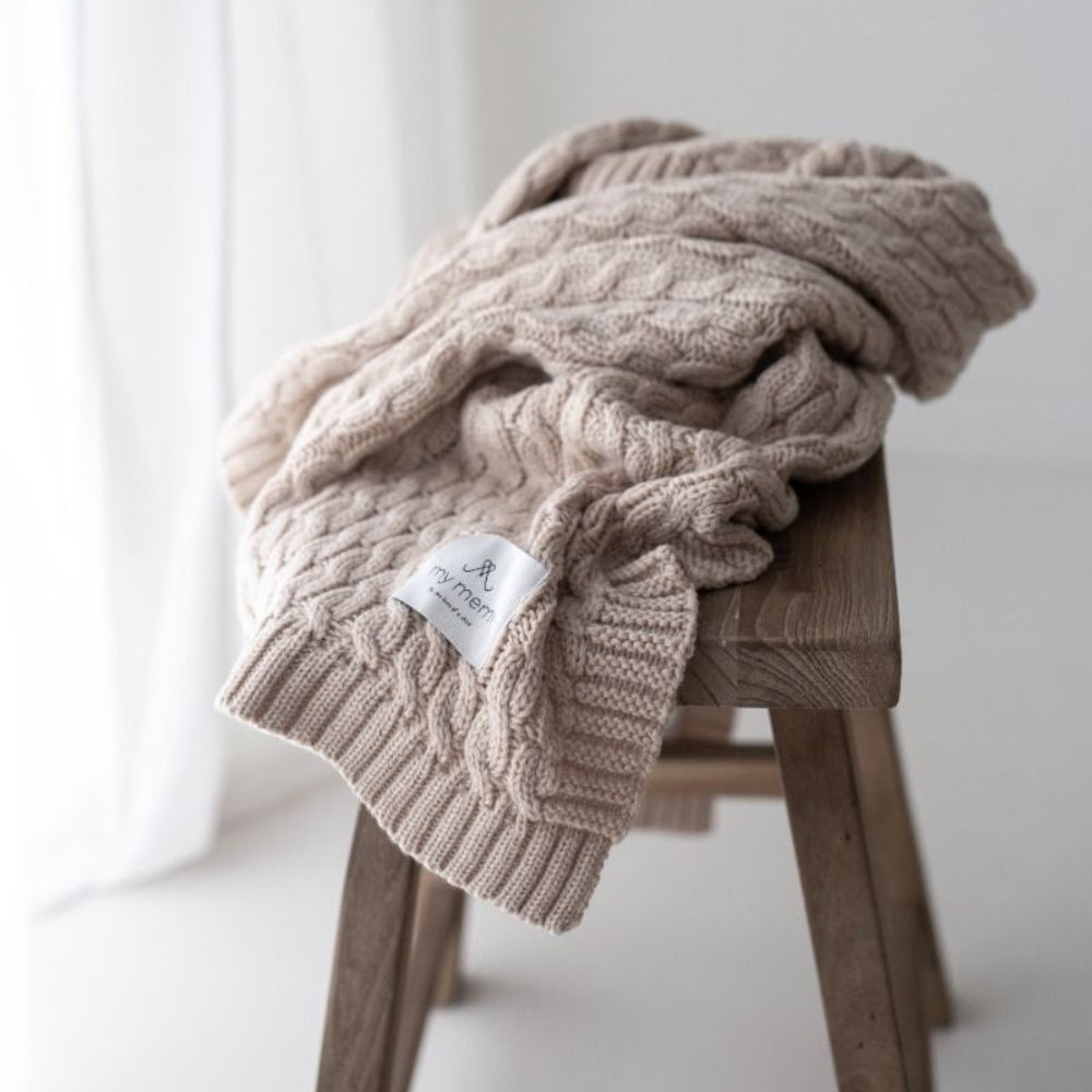 Бежово одеяло от мериносова вълна от премиум колекцията на Memi.