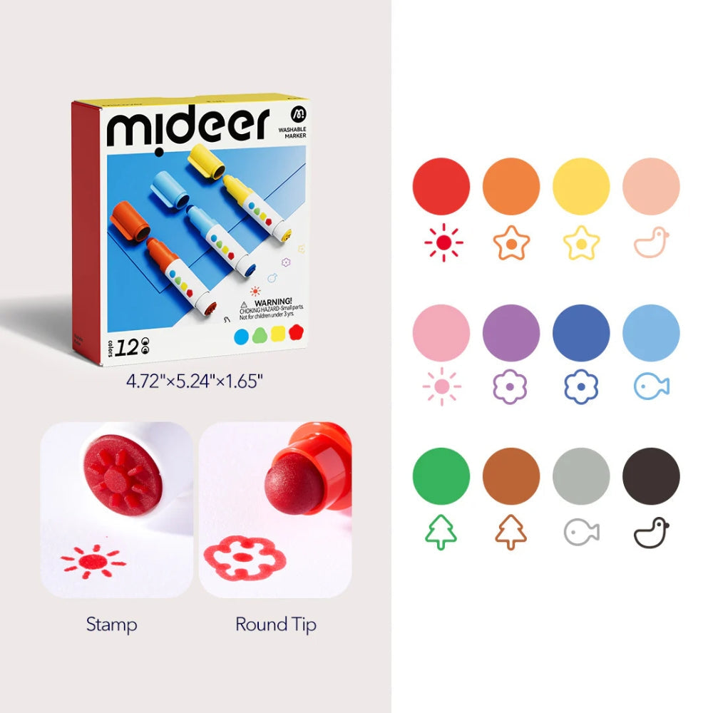Mideer Маркери за миене с кръгъл връх 12 цвята