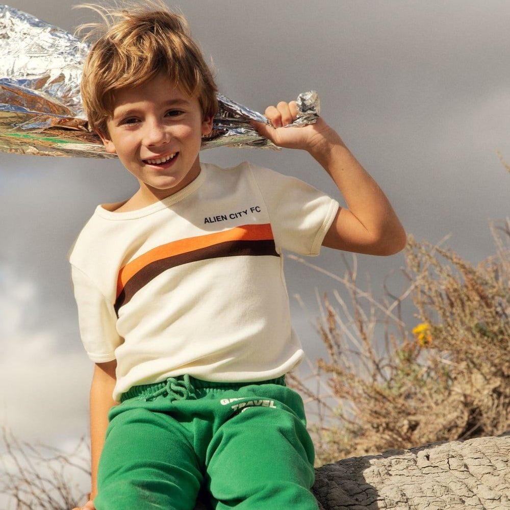 Mini Rodini Детска фланелка с къс ръкав Alien City FC 8 Off-white