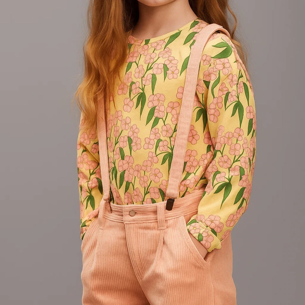 Тениската с дълъг ръкав и алпийски цветя е задължителна в гардероба на всеки малък изследовател на природата.