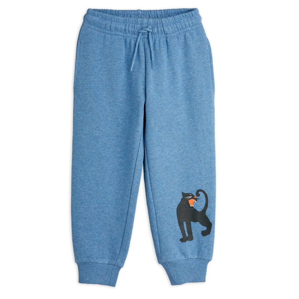 Синият модел е украсен с принт на пантера на левия крак, което му придава отличителния вид, характерно за дизайните на Mini Rodini.