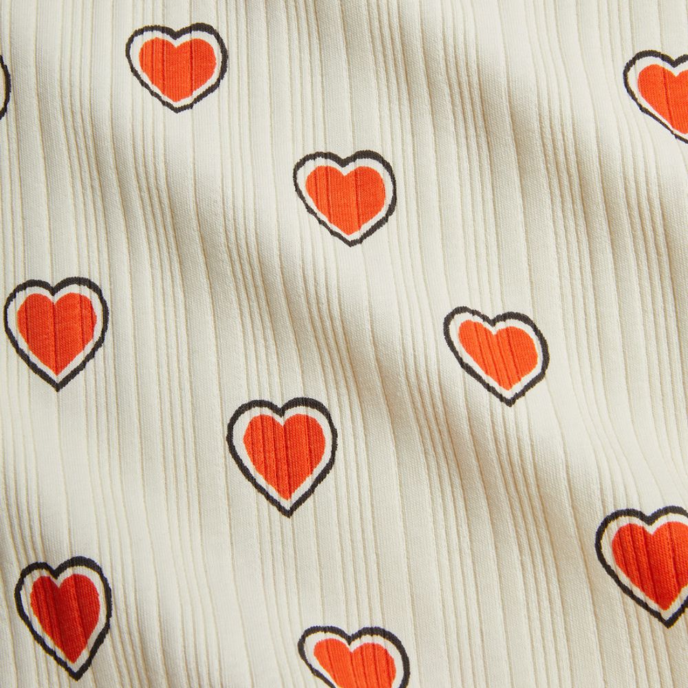 Цялото изделие е украсено с фин принт от очертани сърца, което придава на дрехата лек и момичешки чар.