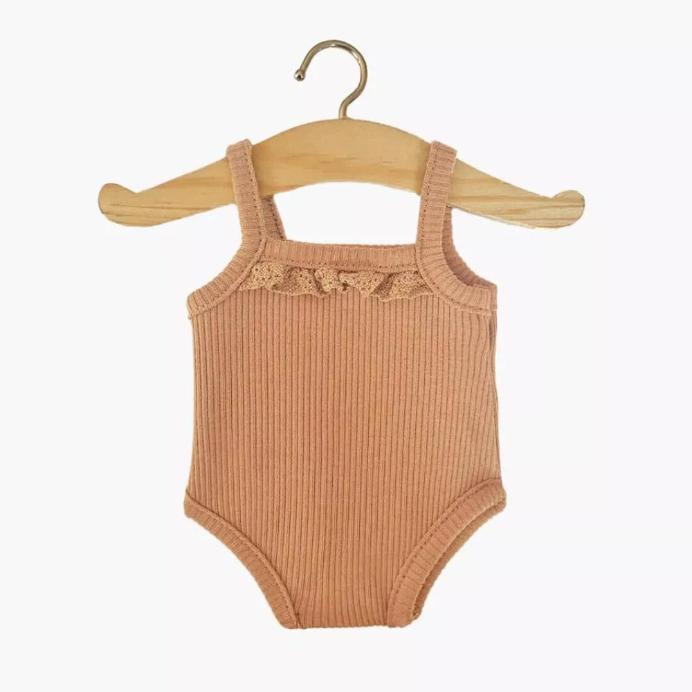 Боди за кукла с кафяви ивици и дантела от Minikane.
