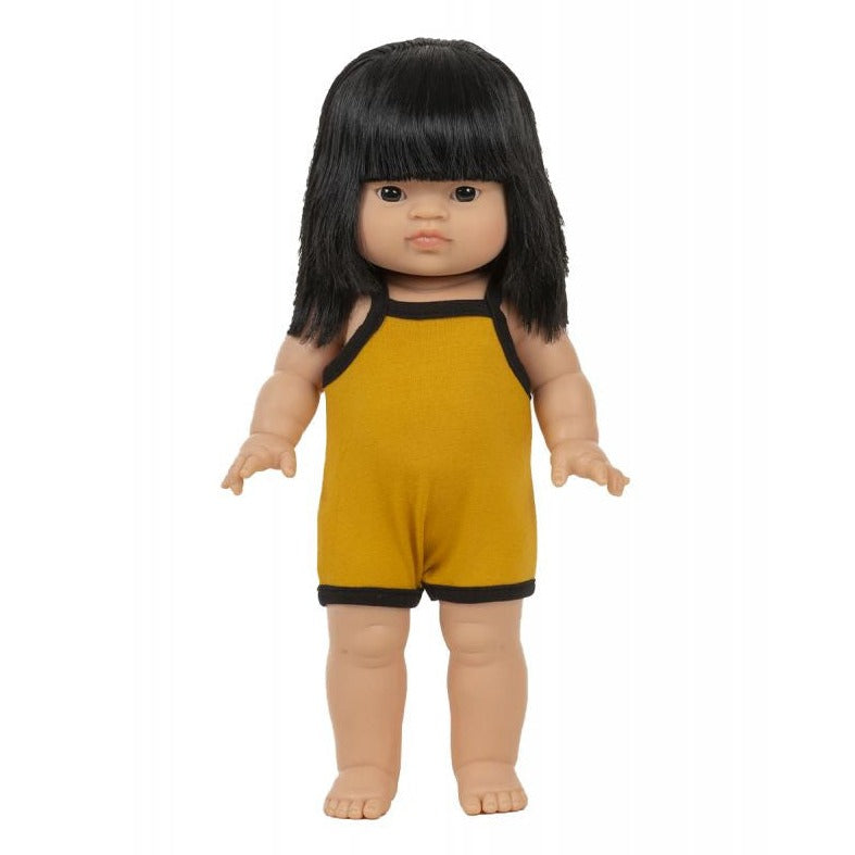 Куклата е с размер 37 см и се предлага с сладък жълт гащеризон.