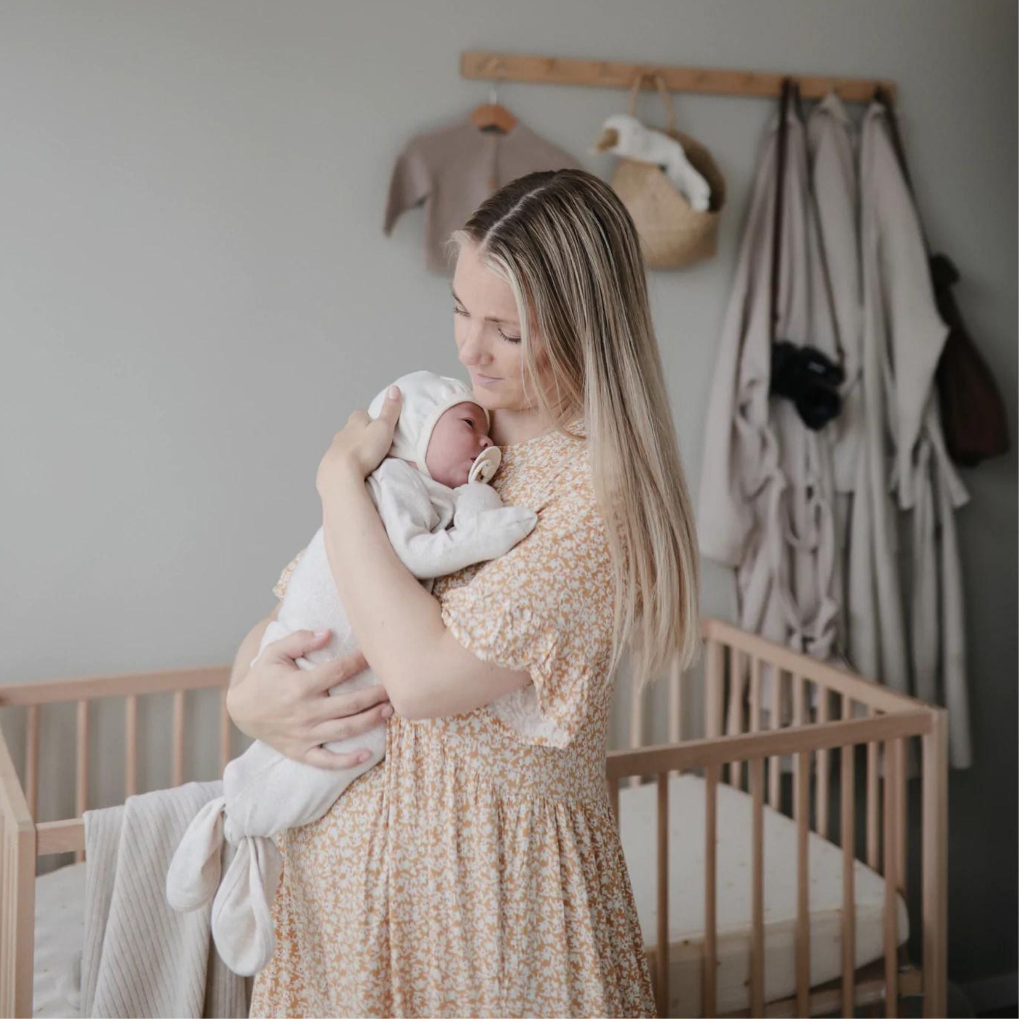 Ексклузивна бебешка пижама от Mushie, която расте заедно с вашето бебе.