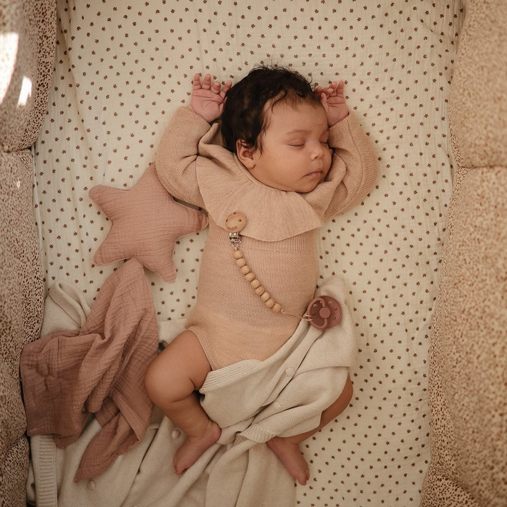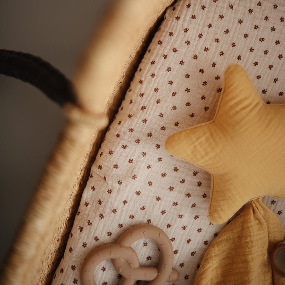 Чаршафът Mushie е изработен от най-здравословния и мек памучен плат за чувствителната кожа на вашето бебе.