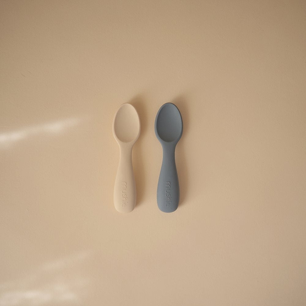 Бебешките лъжички Mushie са идеални за малки деца, които започват да се хранят сами.
