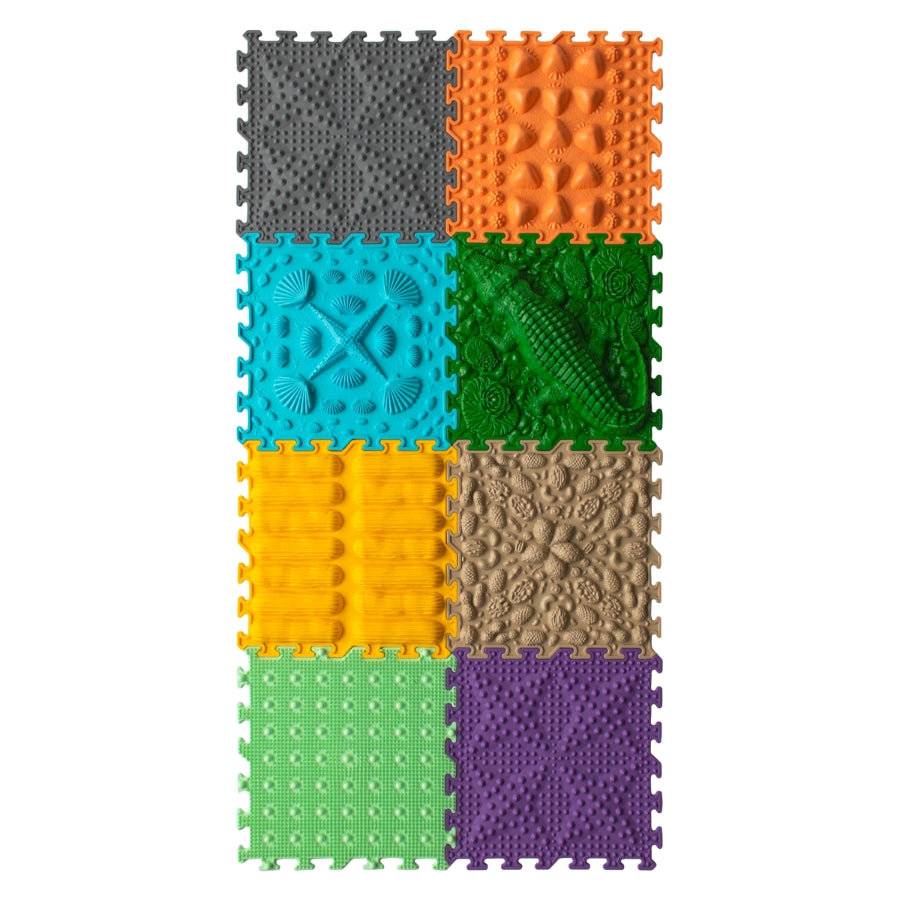 Сензорната постелка от Ortonature предлага широка гама от текстури и цветове, които стимулират въображението, подобряват кръвообращението, помагат за коригиране на плоскостъпието, спомагат за премахване на отоците в краката и подпомагат вестибуларния апарат.