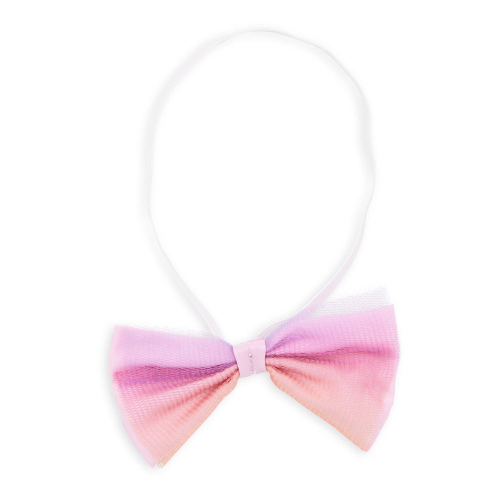 - Комплектът включва: кукла с височина 46 см, рокля с блестящ топ и двуслойна пола – горният слой е от тюл в цветовете на дъгата, които се редуват, на раменете има тюлени акценти, които препращат към долната част на роклята, лента за коса с панделка, украсена със същия тюл, бельо, обувки