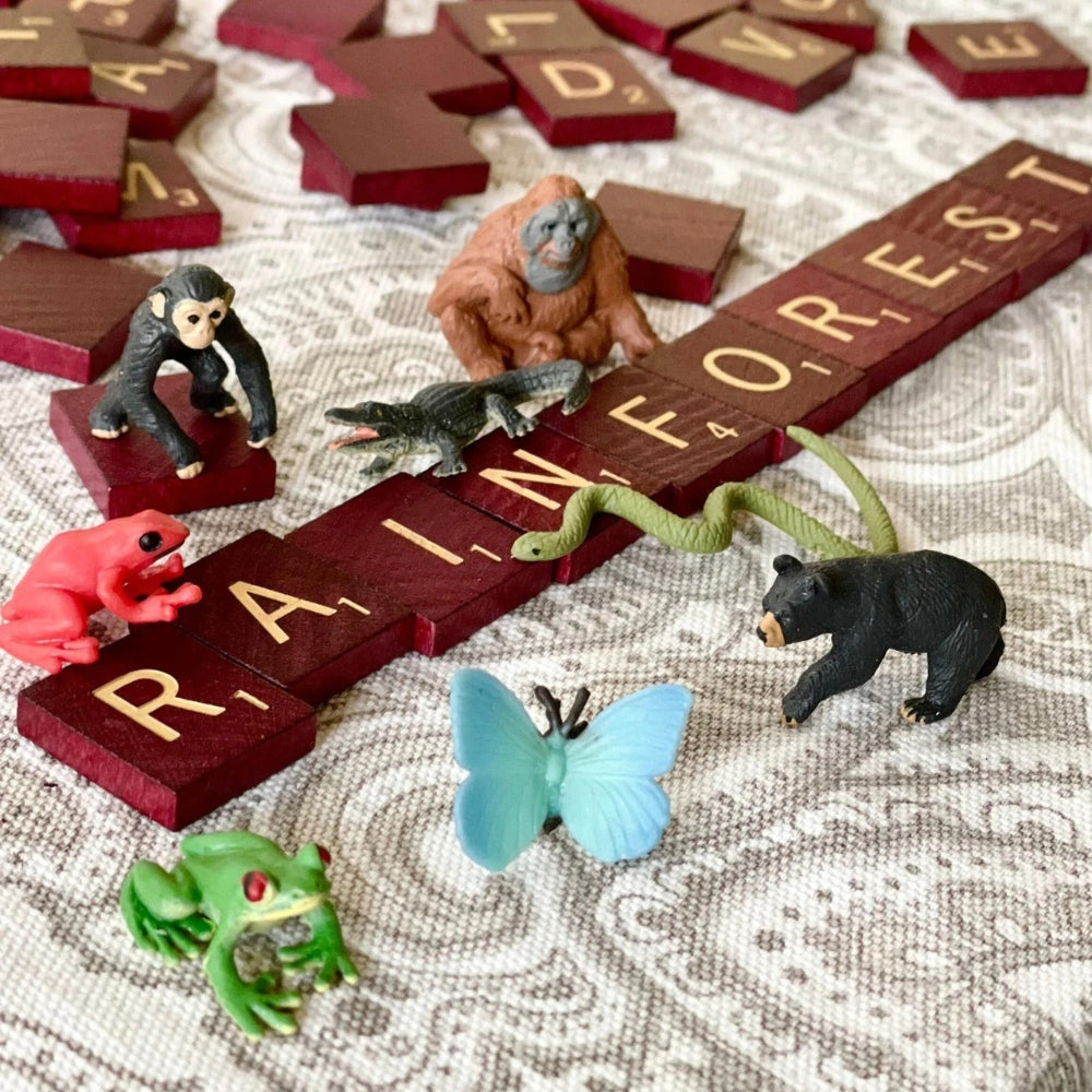 Този очарователен комплект от 8 обитатели на тропическите гори е идеален за образователни занимания, а също така е чудесно допълнение към играчките на Монтесори за проучване на екосистемите и проекти за биомите.
