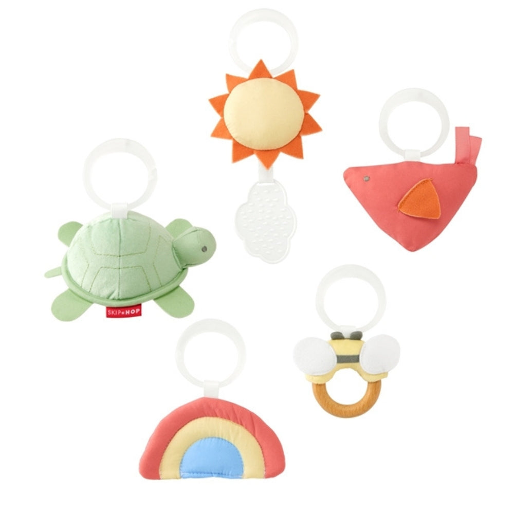 Skip Hop е обърнал внимание на всеки детайл – от контрастните илюстрации, през различните текстури и нежни звуци, до отделимите елементи, които могат да се използват и извън постелката. Меките, приглушени цветове се съчетават перфектно с интериора, за да създадат естетична и приветлива среда за вашето дете.