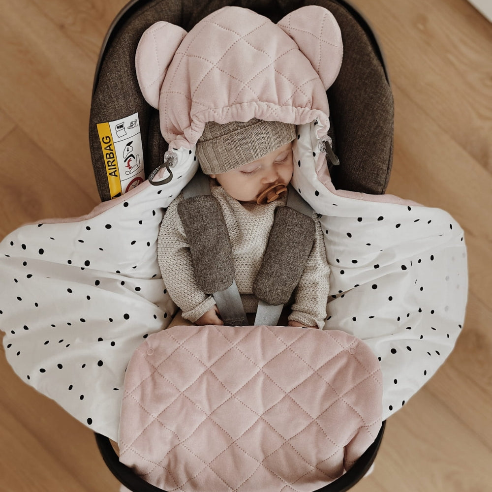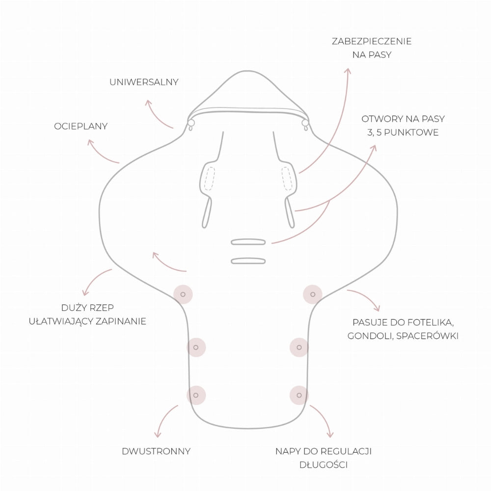 Одеялото е подходящо за 3-точкови и 5-точкови колани, като по този начин осигурява сигурно прилягане за бебета от първите дни на живота им до около 12 месеца.