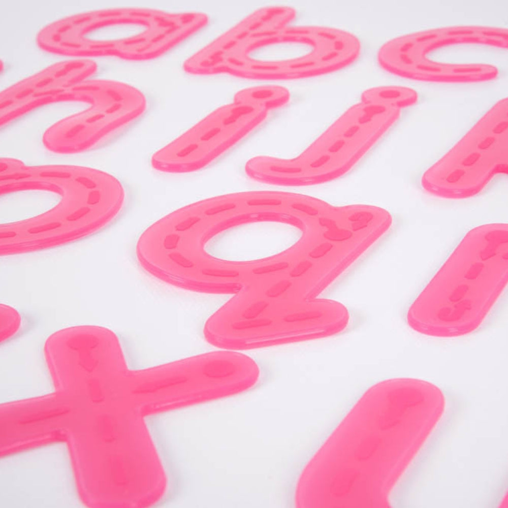 Прозрачните розови детски букви от мек и гъвкав силикон са идеалното допълнение към ежедневните игри.
