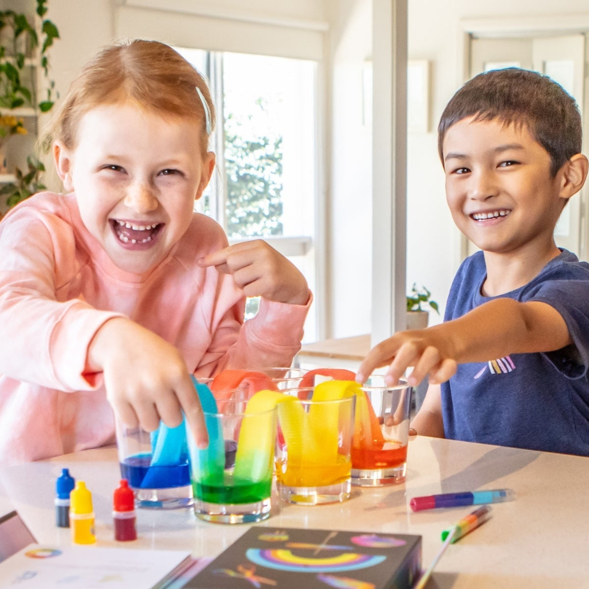 Rainbow Lab - Fun with Colours от Tiger Tribe е вдъхновяващ набор от експерименти, предназначени да развиват любопитството и творчеството на децата.