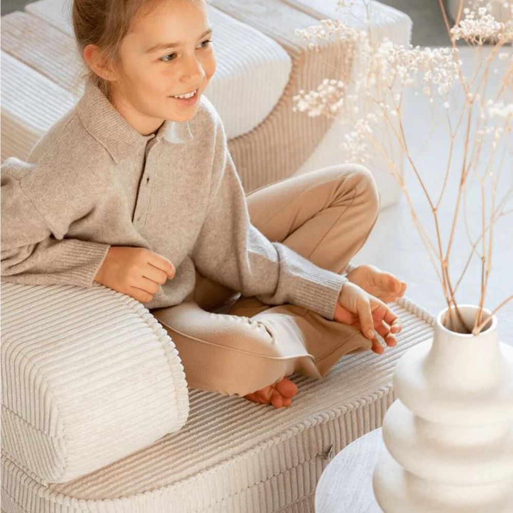 Детското столче Marshmallow Flip от велур на Wigiwama е стилно и практично допълнение към всяка детска стая.