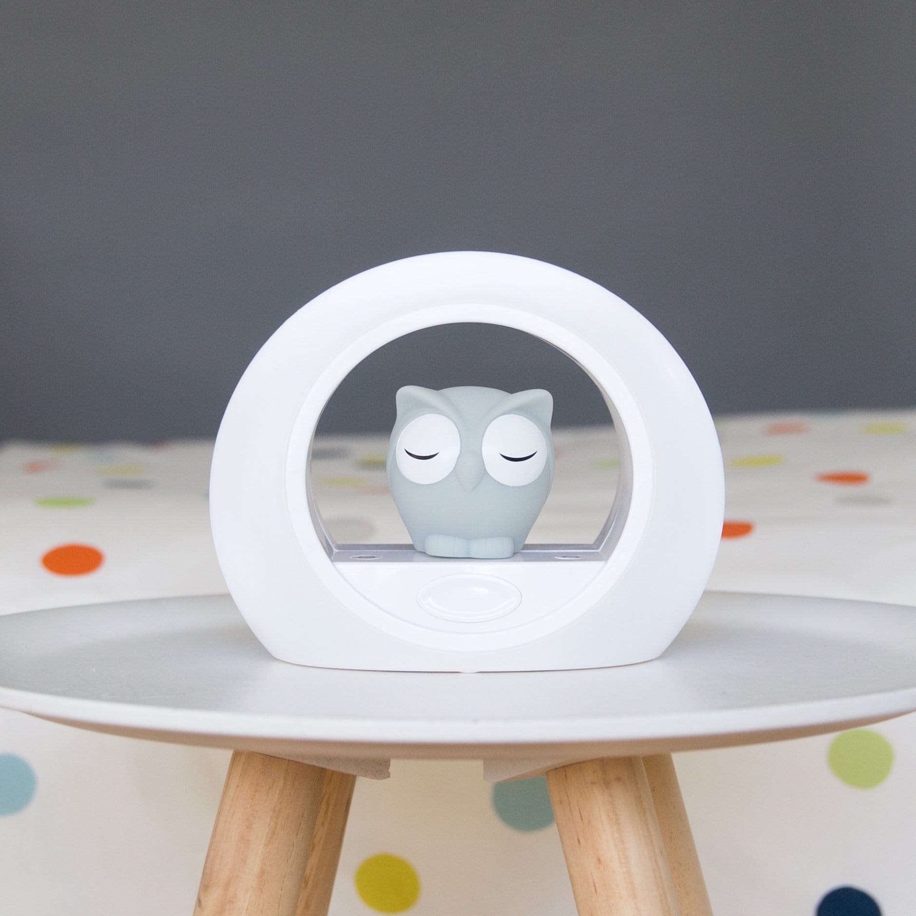 Нощната лампа Zazu LOU в сиво осветява нежно стаята, докато детето ви се приготвя за лягане.
